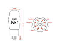 Featuring gold pins for improved conductivity and corrosion resistance, the SELECT 6SN7 is a dual triode tube commonly used in driver stages of power amplifiers and other audio circuits. It delivers a rich, detailed presentation with a wide soundstage and excellent dynamic range.